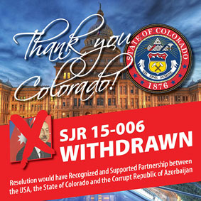Ամերիկայի Միացեալ Նահանգներու Հայ Դատի Յանձնախումբը կը հաղորդէ թէ Գոլորատօ նահանգի Ծերակոյտը մերժած է քննել հակասական ու խնդրայարոյց բանաձեւ մը, Resolution SJR 15-006 անուանումով, որ կ'անդրադառնար ատրպէյճանա-ամերիկեան
