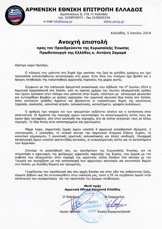 Ամերիկայի Հայ Դատի գրասենեակը կը շարունակէ ճնշում գործադրել Պարաք Օպամայի վարչակարգին վրայ, որպէսզի ուղիղ պատասխան ստանայ Սուրիոյ հայաբնակ Քեսապ աւանի վրայ յարձակման գործին մէջ Թուրքիոյ դերին վերաբերեալ: