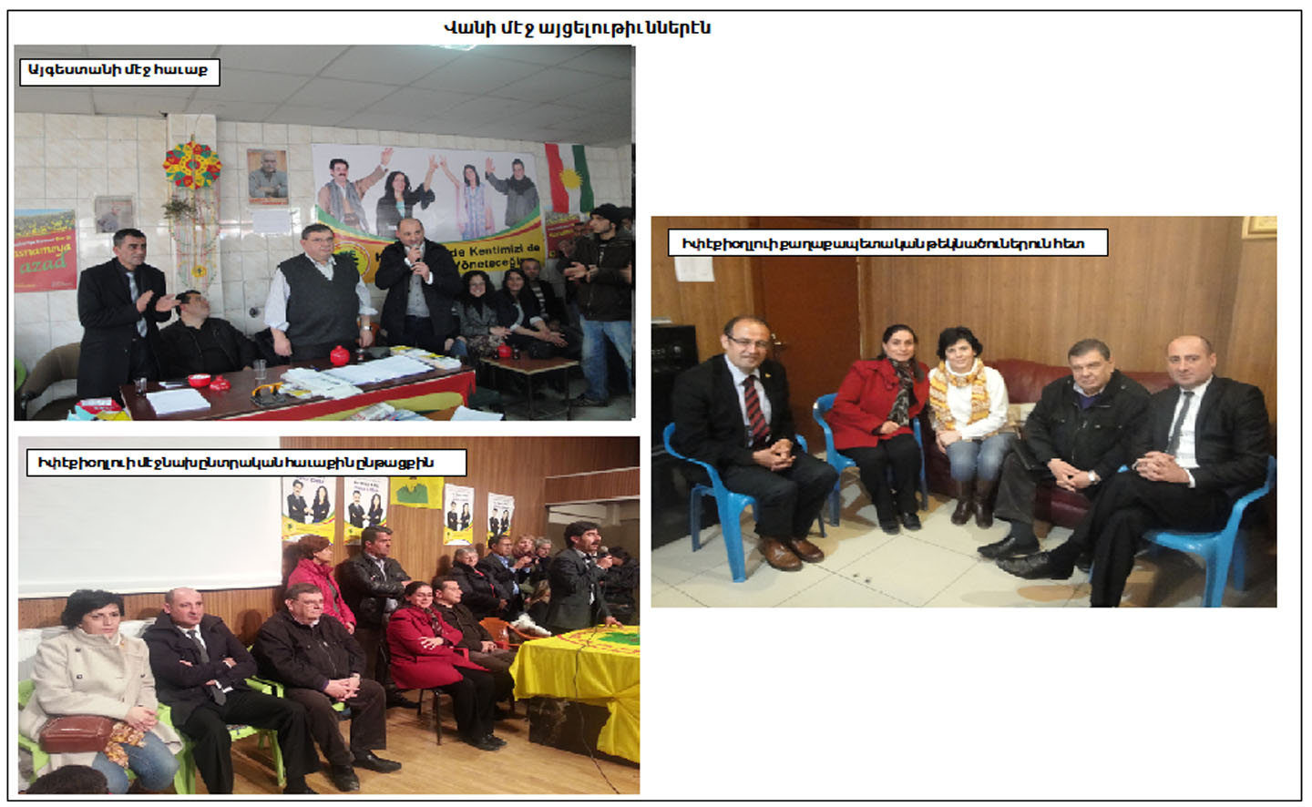 Երկու քաղաքապետական թեկնածուները ընկերացան մեզի եւ սկսանք այցելել Իփեքիօղլուի շըրջանները: Մեր հետ էր նաեւ Վանի քաղաքապետ Պեքիր Քայա: Մինչեւ ուշ գիշեր շրջեցանք կեդրոնները, ուր բոլոր խօսողներուն կողմէ կը նշուէր մեր ներկայութիւնը, ըսելով թէ եղբայրաբար կ'ընդունին մեզ, խոր գիտակցումով թէ մենք հոս ապրած ժողովուրդ ենք եւ իրաւունք ունինք այս հողերուն վրայ: Ժողովուրդը մեծ խանդավառութեամբ եւ ծափահարութիւններով, յուզումի մթնոլորտի մէջ կ'ընդունէր այս յայտարարութիւնները: