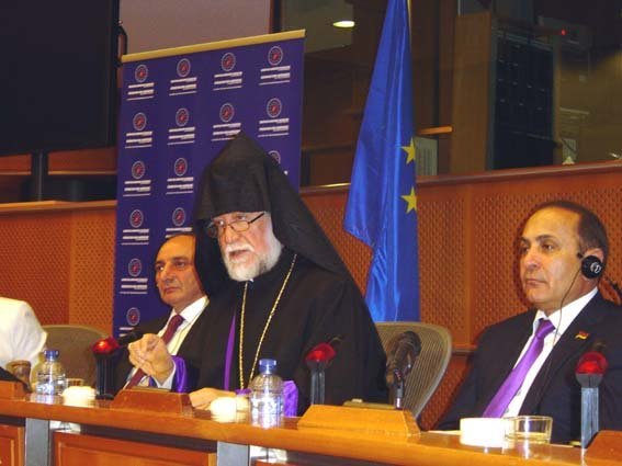 Ապա Վեհափառ Հայրապետը ըսաւ. «Ինչո՞ւ Թուրքիոյ վարչապետը լուռ կը մնայ, երբ իրեն ուղղած մեր նամակին մէջ այս մասին անդրադարձանք։ Ինչո՞ւ Թուրքիոյ կառավարութիւնը լուռ կը մնայ երկու Վեհափառ Հայրապետներու միացեալ կոչին՝ ճանչնալու Ցեղասպանութիւնը, հատուցում տալու Հայ ժողովուրդին ու վերադարձնելու Հայոց եկեղեցիները»։