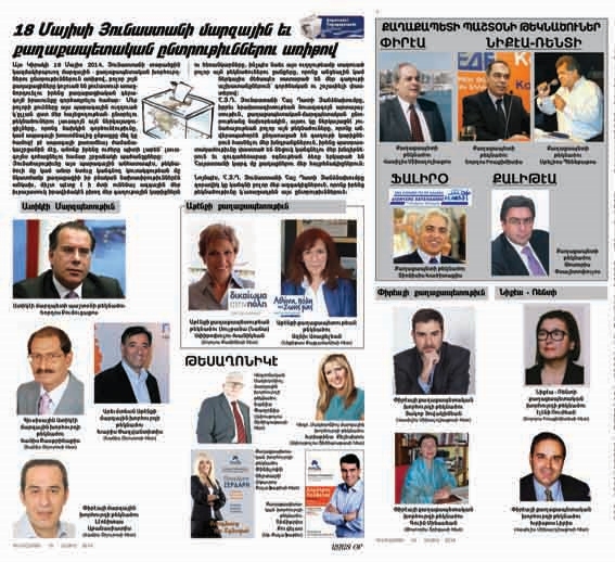 Այս Կիրակի 18 Մայիս 2014, Յունաստանի տարածքին կազմակերպուող մարզային - քաղաքապետական խորհուրդներու ընտրութիւններուն առիթով, բոլոր յոյն քաղաքացիները կոչուած են քուէատուփ առաջնորդուելու իրենց քաղաքացիական գերագոյն իրաւունքը գործադրելու համար: