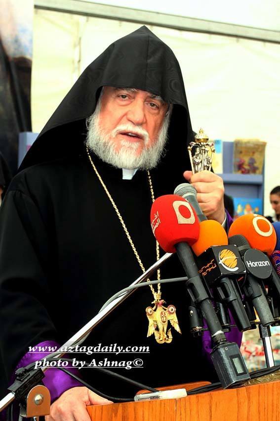 Վեհափառը խօսելով Մեծի Տանն Կիլիկիոյ կաթողիկոսութեան կողմէ հաստատուած հայ գիրքի ցուցահանդէսներու շղթային մասին, ըսաւ, թէ անոր «33-րդը կու գայ հաստատելու մեր Ս. աթոռին նախանձախնդրութիւնը հայ գիրին ու գիրքին նկատմամբ: Սիրտս ուրախութեամբ կը լեցուի, երբ կը լսեմ կամ կը տեսնեմ, որ հայ ծնողներ իրենց զաւակներուն ձեռքէն բռնած մայրավանք կու գան ու հայ գիրք կ՛առնեն: Կ՛ուրախանամ, երբ կը լսեմ կամ կը տեսնեմ, որ հայ դպրոցներու աշակերտներ խմբովին այստեղ կու գան ու իրենց փոքրիկ լումաները տալով հայ գիրք կը գնեն, ու իրենց ծնողներուն կը տանին»: