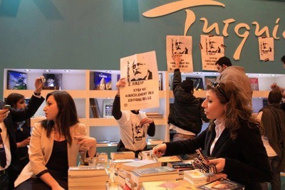 Փարիզի մէջ իրականացող գրքի միջազգային 32-րդ ցուցահանդէսին ընթացքին, խումբ մը հայ երիտասարդներ բողոքի ցոյց կատարեցին Թուրքիոյ տաղաւարին մօտ, ի նպաստ բանտարկուած Ռակըպ Զարաքօլուի լոզունգներ բացագանչելով եւ Թուրքիոյ մէջ ազատութիւններու ոտնահարման դէմ բողոքելով: