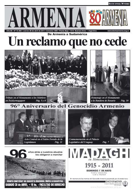 ՀՀ Սփիւռքի Նախարարութեան յայտարարութիւն մը կը տեղեկացնէ, թէ Արժանթինի մայրաքաղաք՝ Պուէնոս Այրէսի «Արմենիա» թերթը պարգեւատրուած է Նախարարութեան կողմէ, որպէս գրաւոր շաբաթաթերթ, հայկական ինքնութեան ի նպաստ իր ժրաջան աշխատանքին որպէս գնահատանք։ Մեծարանքի առաջին տեղը տրուած է Սուրիոյ Հալէպ քաղաքի «Գանձասար» մեր պաշտօնակիցին։