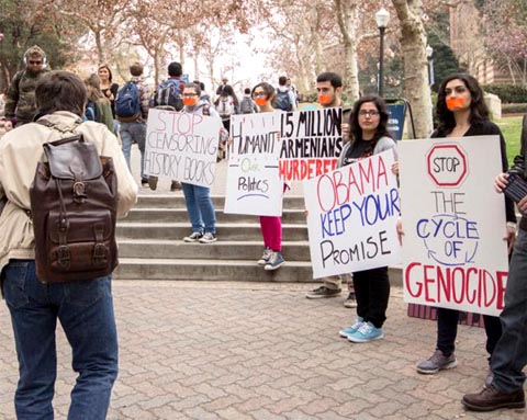ԼՈՍ ԱՆՃԵԼԸՍ.- Նախաձեռնութեամբ Համահայկական ուսանողական միութեան՝ Քալիֆորնիոյ համալսարանի զանազան մասնաճիւղերու, Հարաւային Քալիֆորնիոյ համալսարանի, ինչպէս նաեւ կարգ մը սեփական համալսարաններու Հայ ուսանողական միութիւնները Հինգշաբթի, Յունուար 30ին կրցան Հայկական Ցեղասպանութիւնը ուրանալու ջանքերը դատապարտող իրենց համակարգուած ցոյցերուն վրայ յատկանշական ուշադրութիւն գրաւել համալսարաններէն ներս ու համացանցի ընկերային ցանցերուն վրայ, որոնց մէջ Հայկական Ցեղասպանութեան հարցը, Հինգշաբթի յետմիջօրէին, դարձած էր քննարկուած գլխաւոր հարցերէն մէկը: