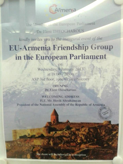 րէկ, 9 Յունուար 2013ին, Պրիւքսելի մէջ, Եւրոպական Միութեան խորհրդարանի շէնքէն ներս, պաշտօնապէս յայտարարուեցաւ Եւրոպական խորհրդարան - Հայաստան բարեկամական խումբի ստեղծումը, նախագահութեամբ տոքթ. Էլենի Թէոխարուսի