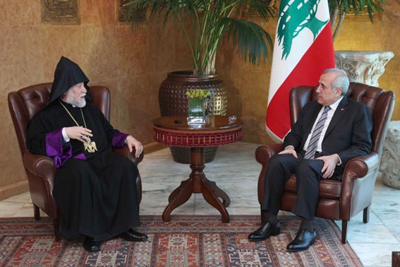 Ուրբաթ, Ապրիլ 27ի առաւօտուն, Արամ Ա. կաթողիկոս պաշտօնական այցելութիւն մը տուաւ Լիբանանի հանրապետութեան նախագահ զօր. Միշել Սլէյմանին եւ հանդիպում ունեցաւ անոր հետ, նախագահական ապարանքին մէջ: