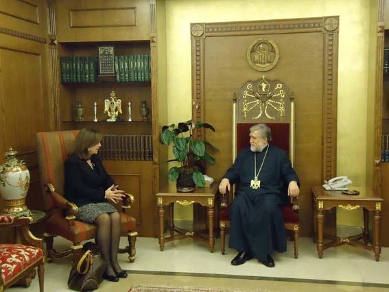 Լիբանանի մէջ Յունաստանի նոր նշանակուած դեսպան դոկտ. Քաթրին Պուրան Ուրբաթ, 13 Յունուար 2012-ի առաւօտուն այցելեց Անթիլիասի մայրավանքը եւ երկար հանդիպում մը ունեցաւ Արամ Ա. կաթողիկոսին հետ: