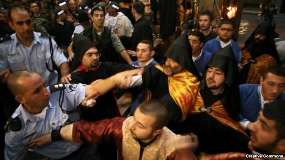 Բեթղեհեմի Սուրբ Ծննդեան եկեղեցւոյ մէջ հերթական ծեծկռտուք տեղի ունեցած է հայ եւ յոյն հոգեւորականներուն միջեւ: Associated Press ամերիկեան գործակալութիւնը կը տեղեկացնէ թէ հայեր ու յոյներ վիճած են եկեղեցւոյ մէջ իրենց յատկացուած հատուածի շուրջ։ Կողմերը բաժնուած են ոստիկանութեան աշխատակիցներու ջանքերով միայն: