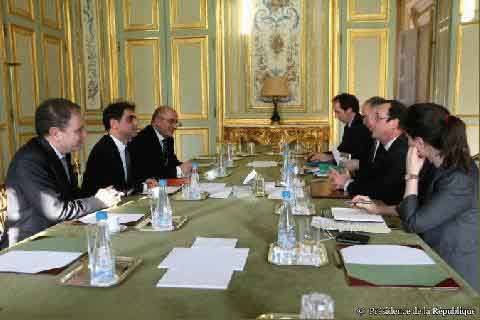 Ֆրանսայի նախագահութեան կայքէջը կը հաղորդէ, որ Ֆրանսայի նախագահ Ֆրանսուա Հոլլանտ ընդունած է Ֆրանսայի հայկական կազմակերպութեանց համակարգումի խորհուրդի ներկայացուցիչներ Մուրատ Փափազեանը, Արա Թորանեանը եւ Ալեքսիս Կէօվճեանը: