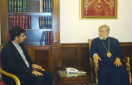 ԱՆԹԻԼԻԱՍ.- Հինգշաբթի, Սեպտեմբեր 5ի առաւօտեան, Արամ Ա. կաթողիկոս Պիքֆայայի վանքին մէջ ընդունեց այցելութիւնը Լիբանանի մօտ Իրանի դեսպան Ղատանֆար Ապատիին: