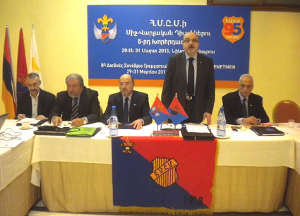 ՀՄԸՄ-ի Կեդրոնական վարչութեան կազմակերպութեամբ, Ուրբաթ, 29 Մարտ 2013-ի առաւօտեան ժամը 9:30-ին, տեղի ունեցաւ ՀամաՀՄԸՄ-ական միջվարչական դիւաններու 8-րդ խորհրդաժողովի բացումը, Նիկոսիոյ «Սեմըլի» պանդոկին մէջ, Կիպրոս: