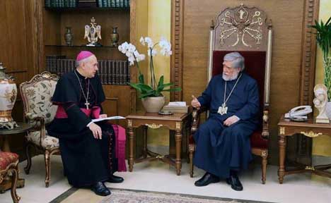 Երեքշաբթի՝ 5 Յունուար 2016ի առաւօտուն, Արամ Ա. Վեհափառ Հայրապետին այցելեց Լիբանանի մօտ Պապական Նուիրակ Կապրիէլ Քաչիա Եպիսկոպոս եւ յանձնեց, Հայոց Ծննդեան տօնին առիթով, Վեհափառ Հայրապետին շնորհաւորութիւններ յայտնող Ֆրանսիս Պապին նամակը: Պապական Նուիրակը Արամ Ա. Կա