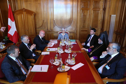 Զուիցերիա կատարած իր այցելութեան ընթացքին ունեցած պետական տեսակցութիւններուն ծիրին մէջ, Արամ Ա. Վեհափառ Հայրապետը հանդիպում ունեցաւ Զուիցերիոյ Ծերակոյտի նախագահ Քլոտ Հեշի հետ: Վեհափառ Հայրապետին կ՛ընկերանային Զուիցերիոյ բողոքական եկեղեցիներու նախագահ Կոտֆրիտ Լո